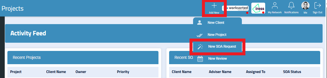 Then select ‘New SOA Request’.