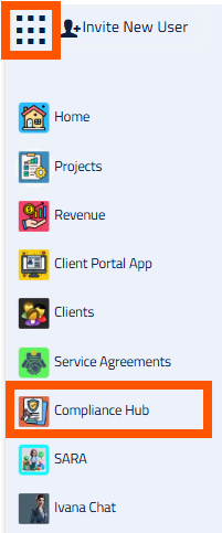 Open the Apps Menu in the top left corner, and click on the Compliance Hub.