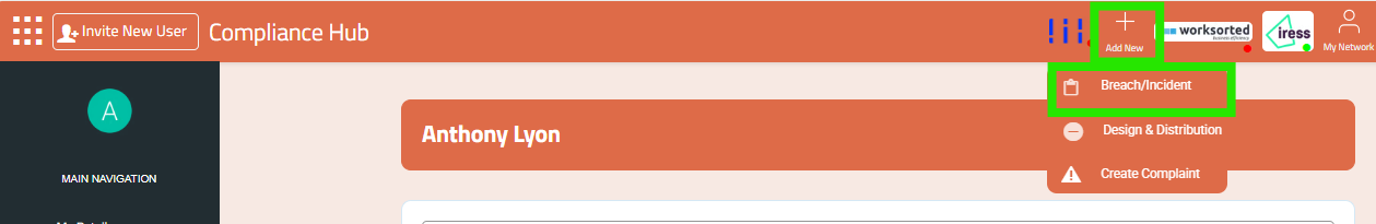 Complete the ‘Create New Breach’ popup.