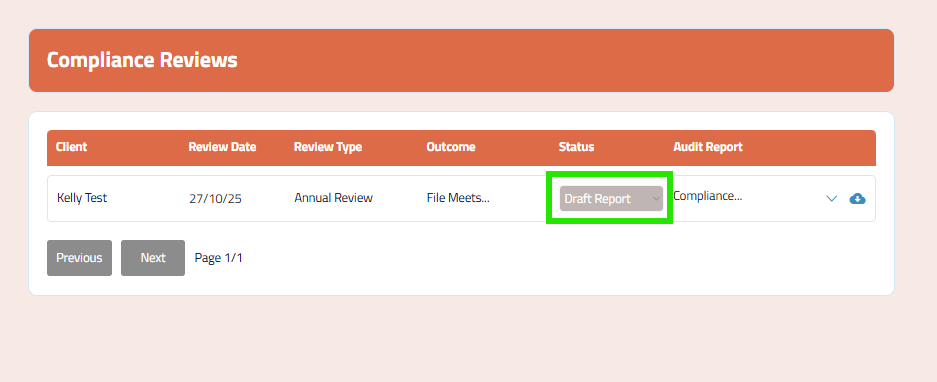 You will notice a new Compliance Review with the status of ‘Draft Report’. This is the report that requires your review.