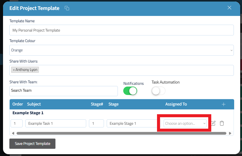If you have switched on Task Automation in your template, the team member will be assigned the task when it is their turn to start working in the project.