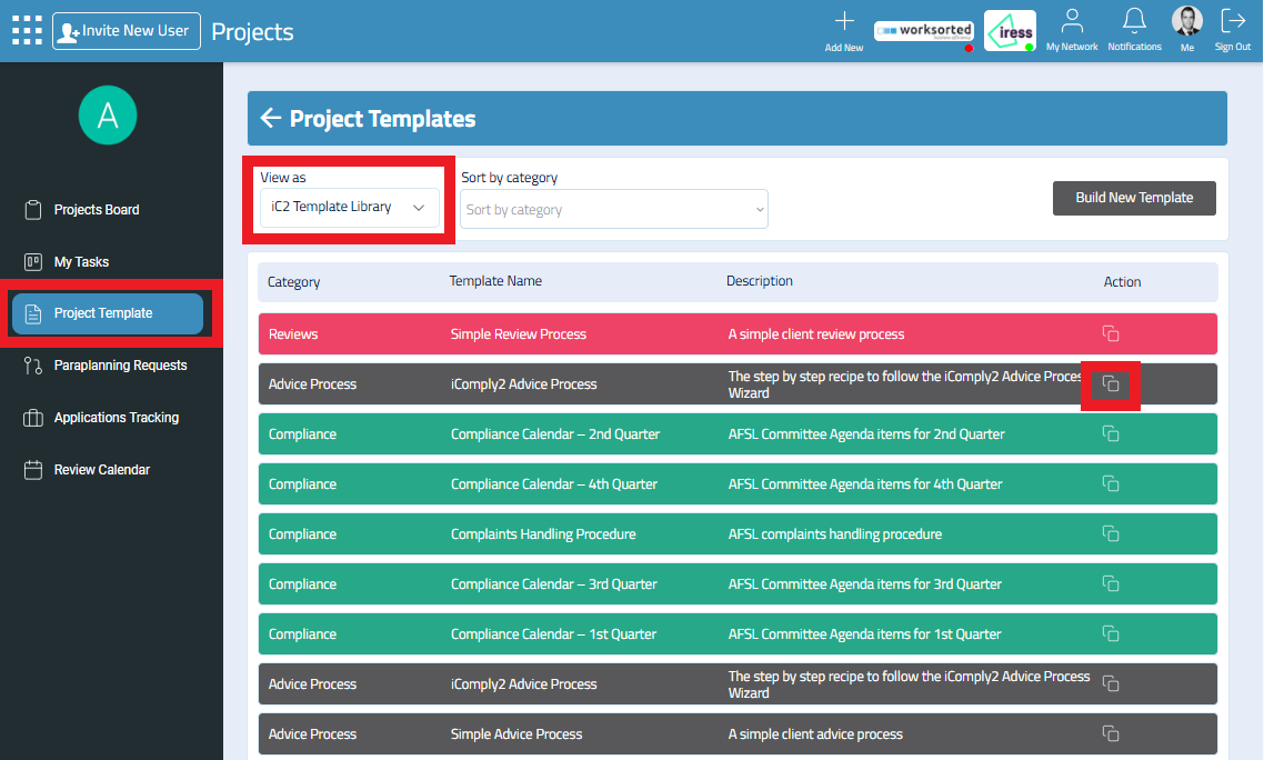 From the ‘view as’ dropdown, you can see a list of pre-built iC2 Templates in the Template Library.