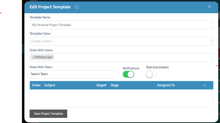 Once created, your new Project Template will appear in the My Projects list. You can copy, edit and delete your Project Template using the tools icon on the right hand side.